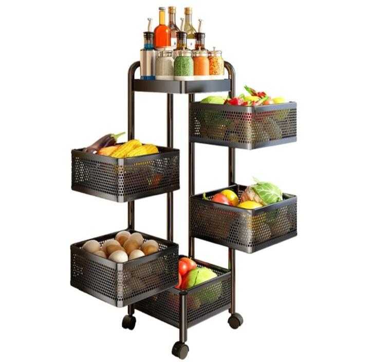 5Tier Square Vagitabal &Fruit Organizer Basket Degree Rotating Moveable Rack for kitchen Storage Baskets